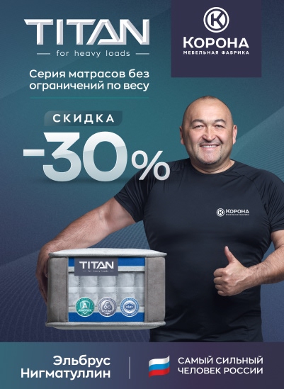 —Скидка 30% на серию матрасов «Titan»